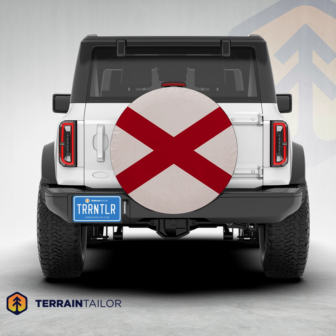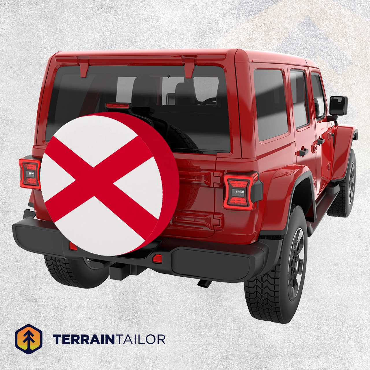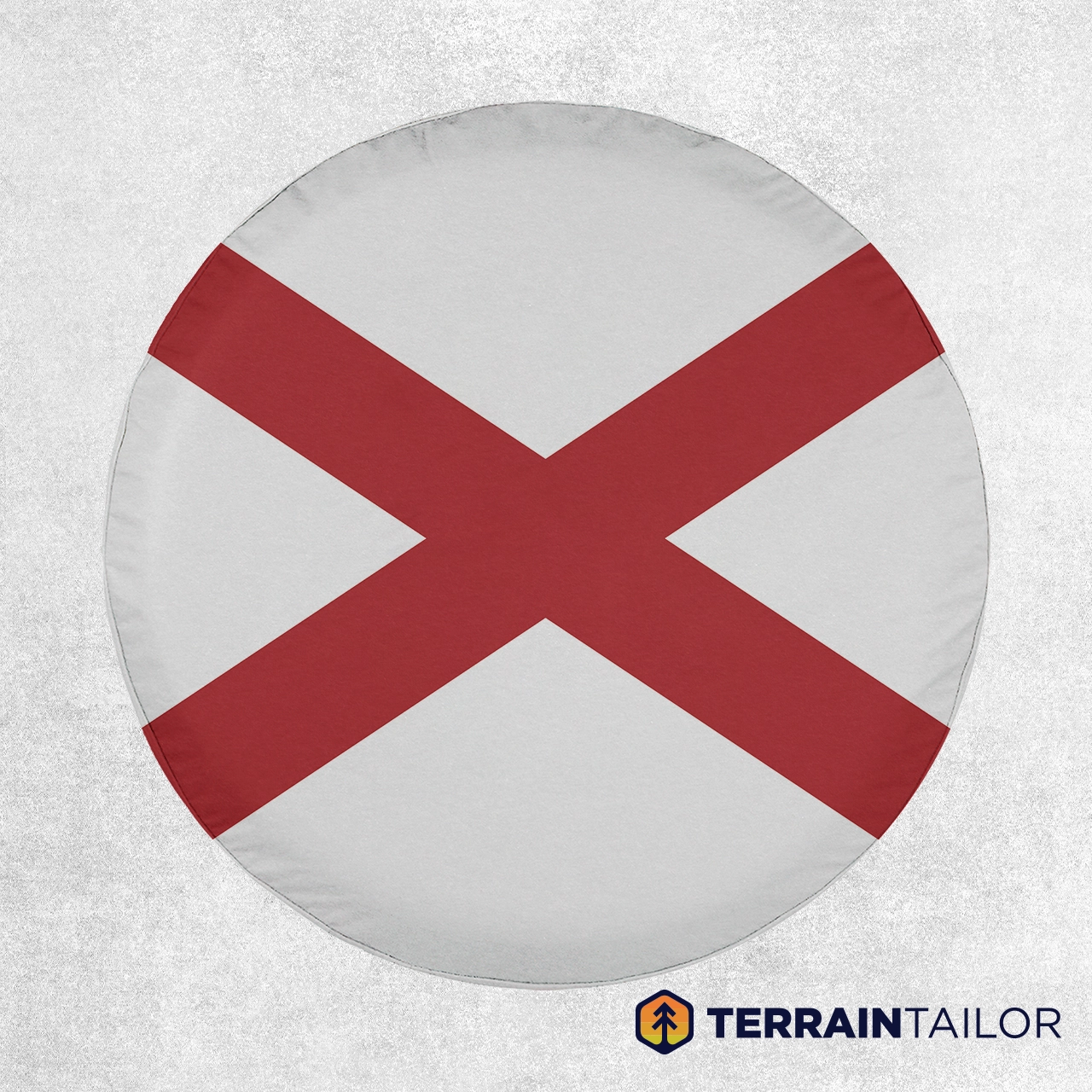 Show your Alabama pride wherever the road takes you. This spare tire cover features the bold crimson cross of the Alabama state flag on a clean white field, creating a timeless design that stands out without being overdone. It’s a simple, unmistakable nod to home that looks right at home on Jeeps, Broncos, RVs, and travel rigs alike.