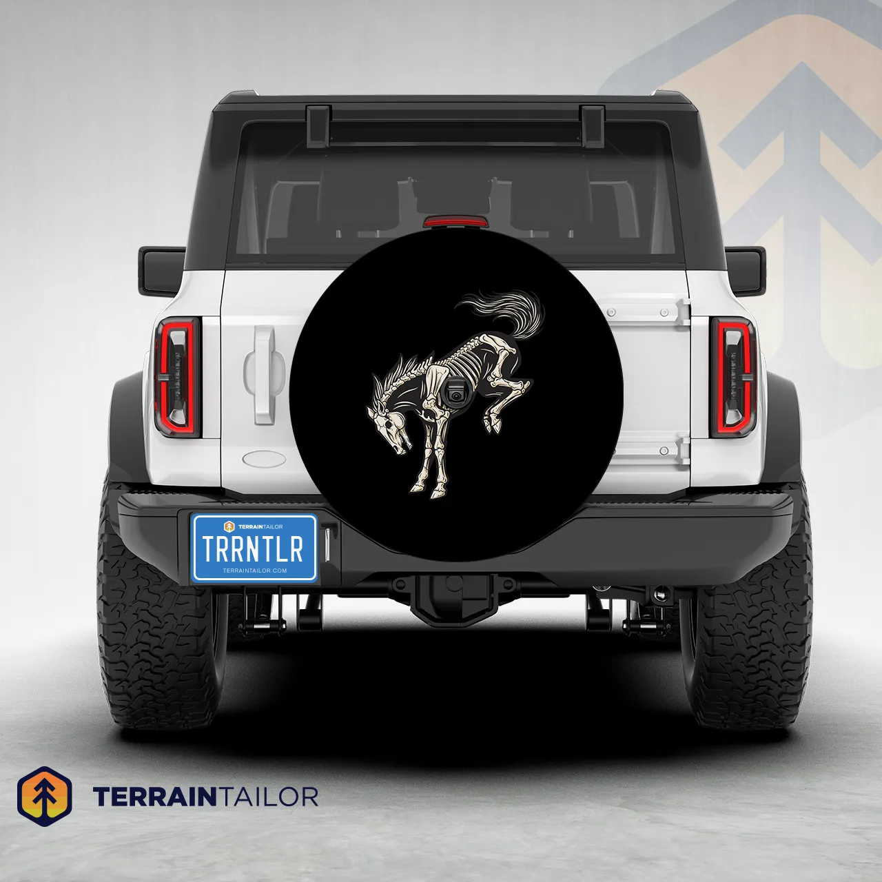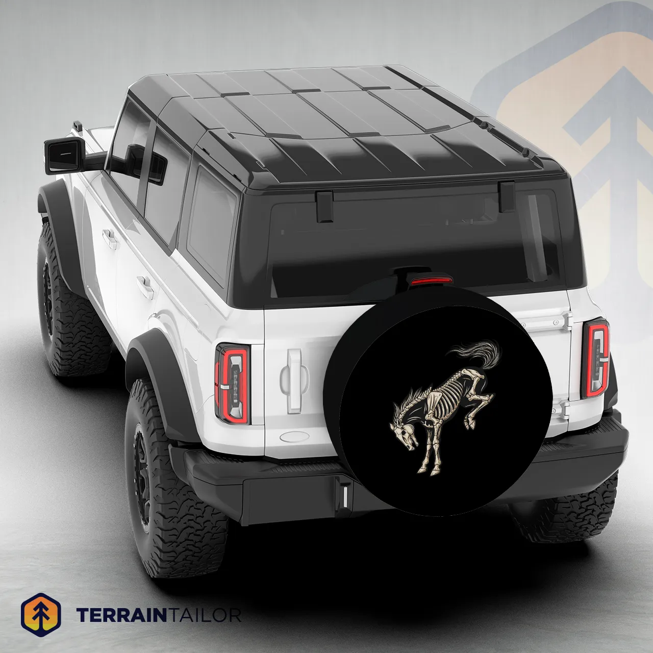 This bold Bronco skeleton design delivers a rugged, high-contrast look that fits perfectly with off-road builds and trail-ready rigs. The skeletal artwork adds an edge without being overdone, making it a strong visual statement from any angle. Designed for daily driving or weekend adventures, it protects your spare while standing out. A solid choice for Bronco owners who want something different and unmistakable.