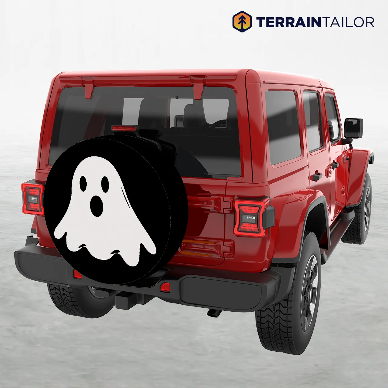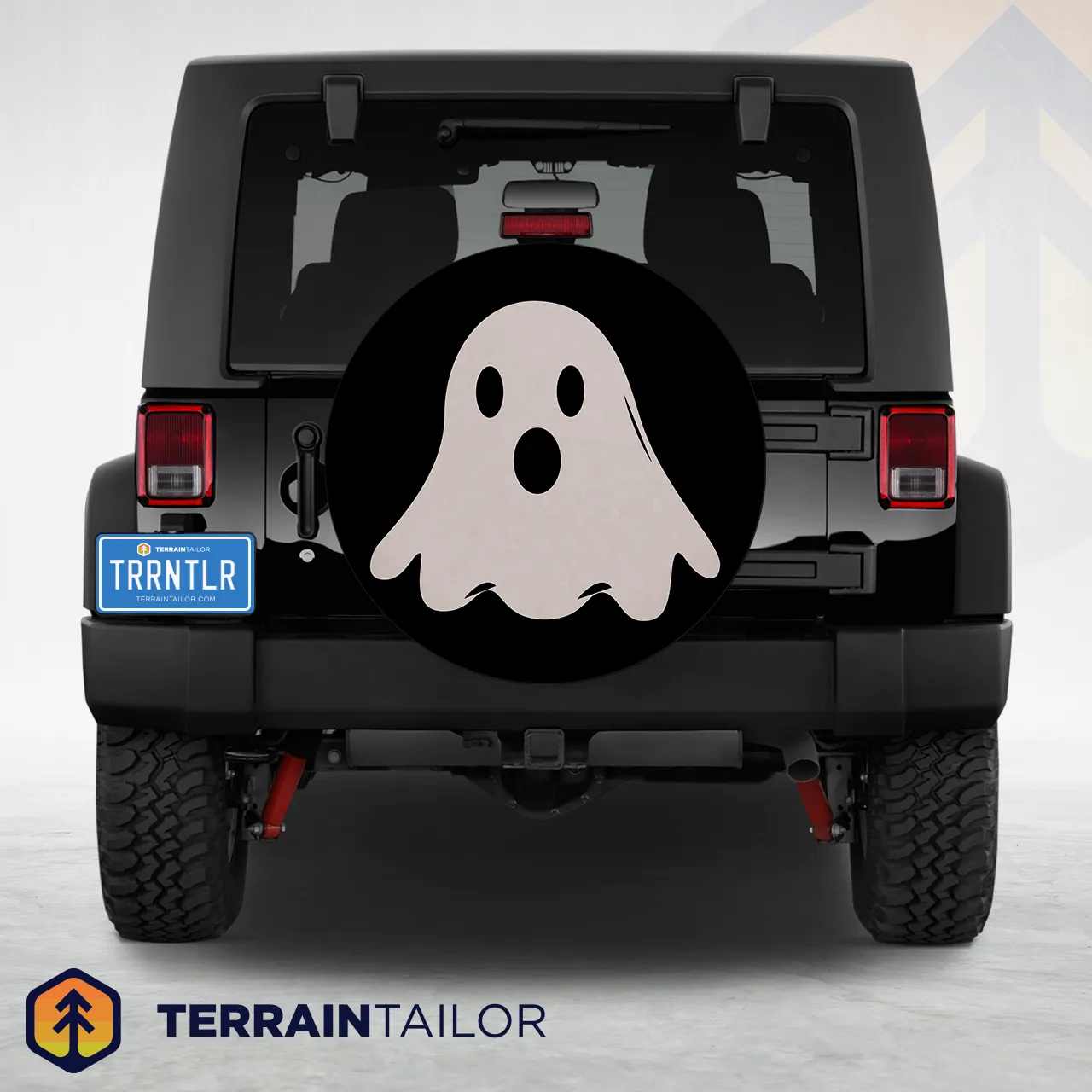 This simple ghost spare tire cover is a fun, Halloween-inspired way to decorate your vehicle for the season. Featuring a friendly, cartoon-style ghost on a bold black background, the design is playful rather than scary, making it perfect for family-friendly events like trunk-or-treat, fall festivals, or neighborhood gatherings.