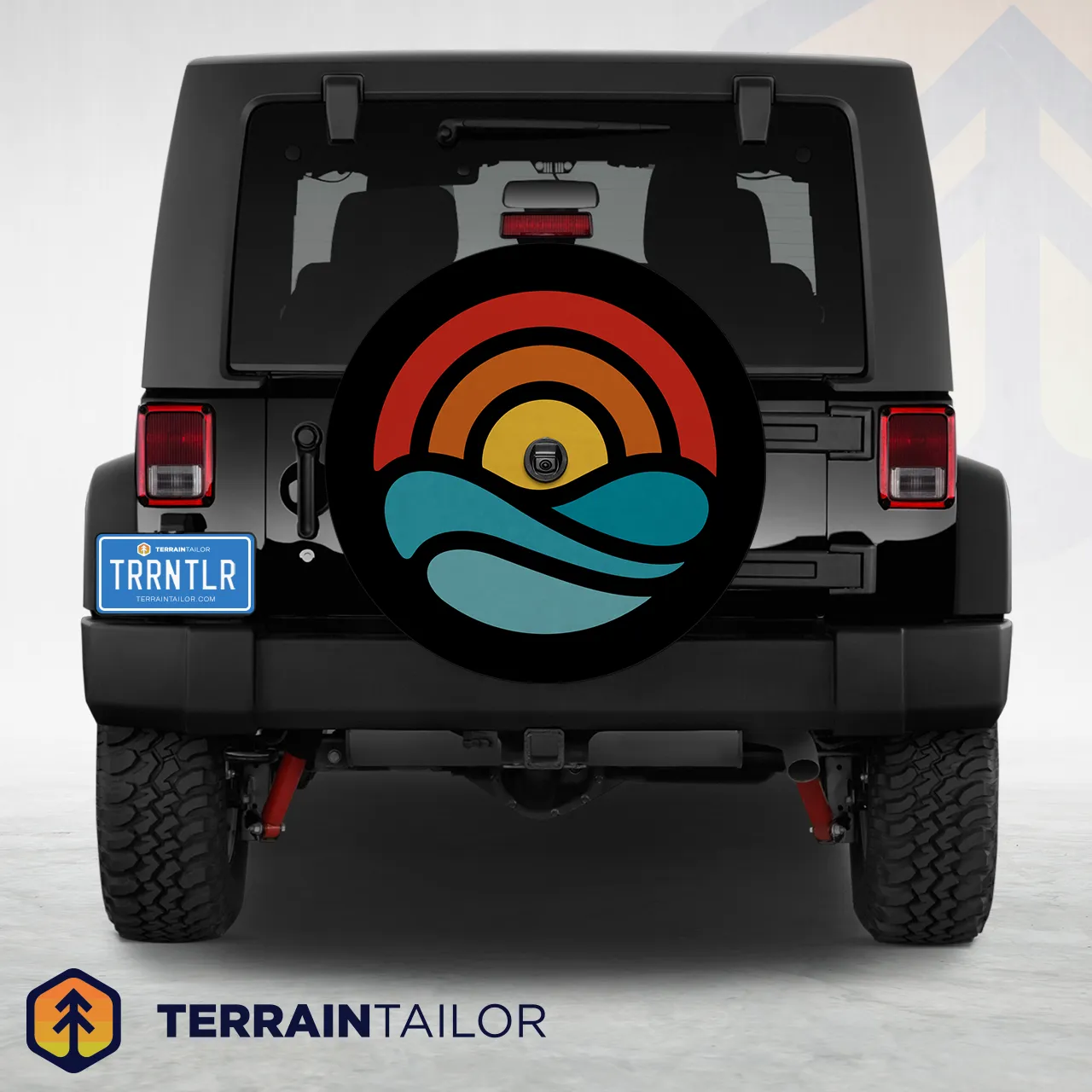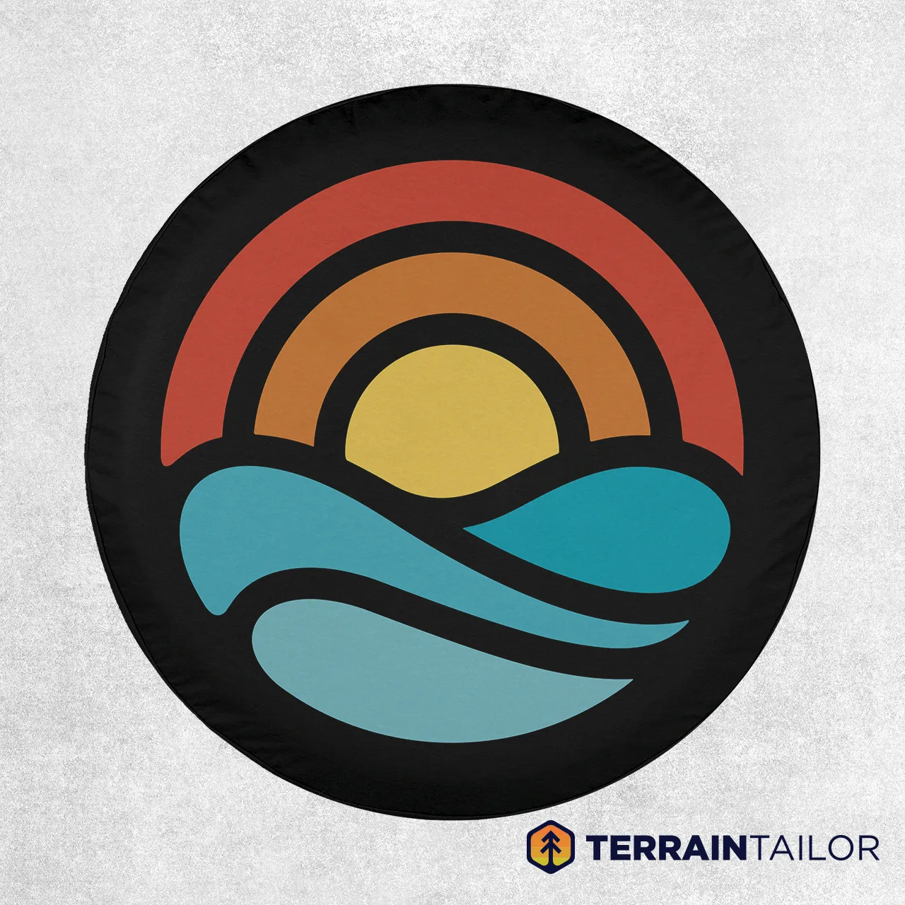 This sunset-and-waves design keeps things simple and bold. Clean curves and warm colors give it a laid-back, modern feel. It works just as well in the city as it does on the road.