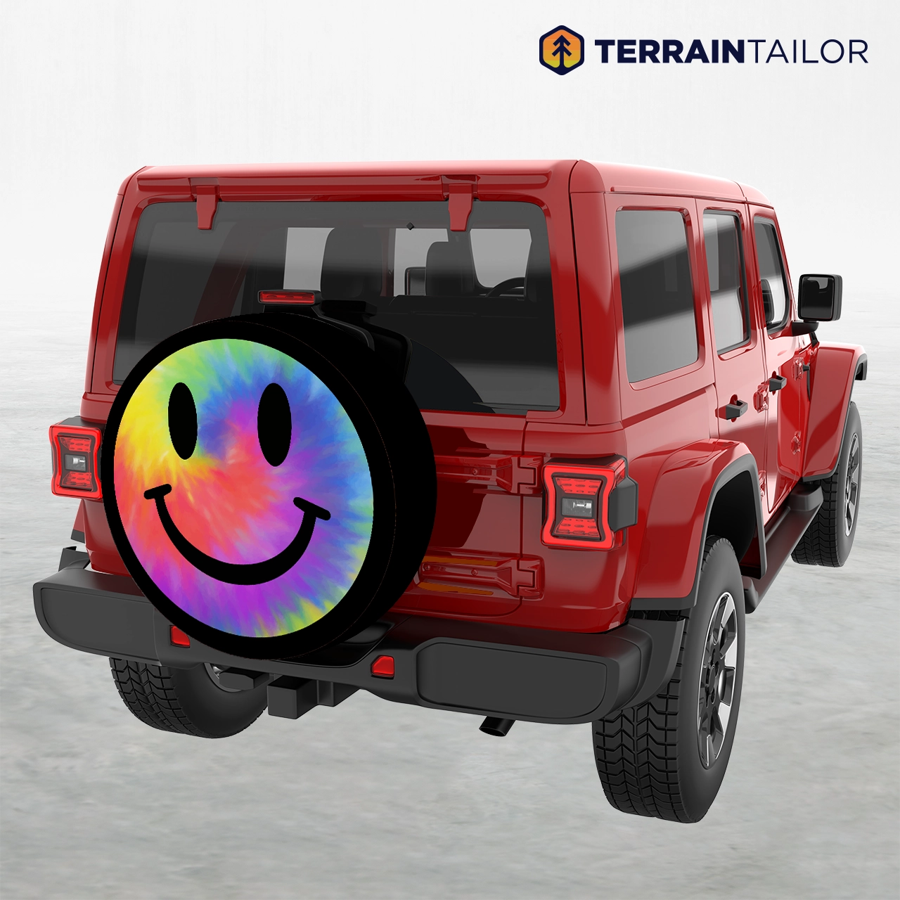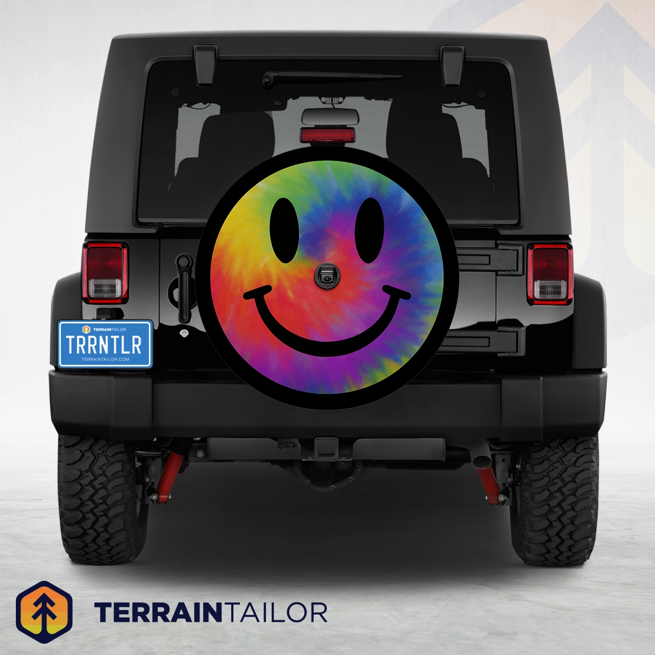 This spare tire cover keeps things light with a classic smiley face set against a bold tie-dye swirl. The mix of bright color and simple line work gives it a relaxed, fun look that feels right at home on beach cruisers, weekend rigs, and daily drivers alike. It’s playful without trying too hard and adds personality without overpowering the rest of your build.
